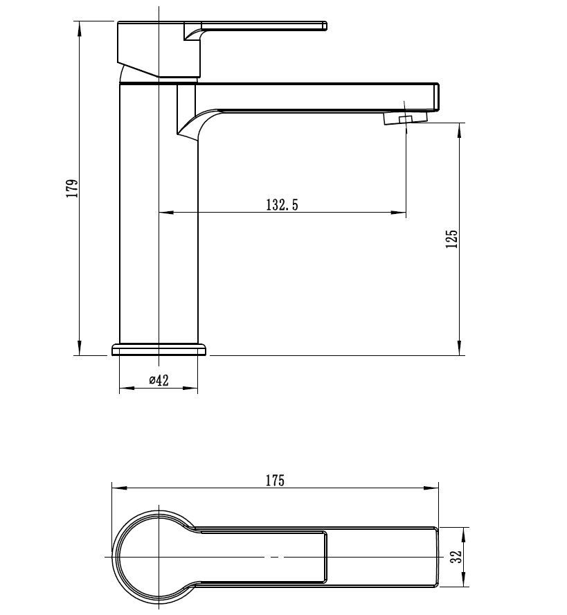 Длина излива: 133 мм
