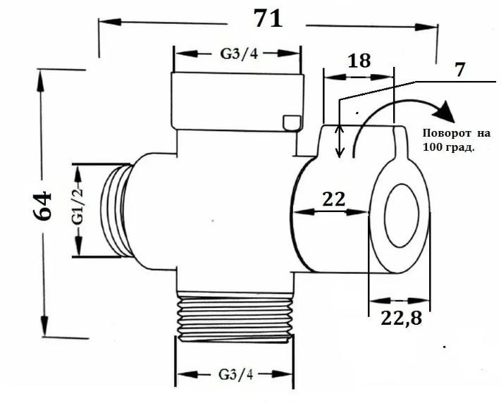 Размеры подключения: 3/4-1/2-3/4