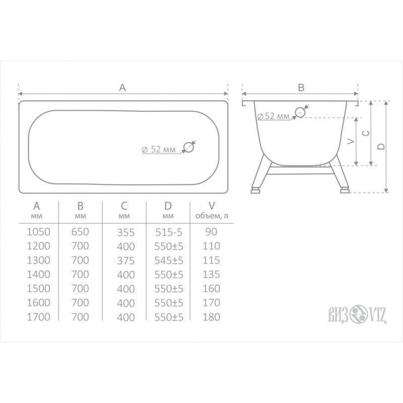 Ванна стальная Антика 160*70 белая+ножки